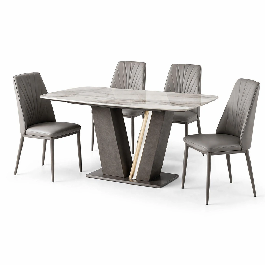 Conjunto de mesa y sillas de 5 piezas con mesa de mármol y sillas grises