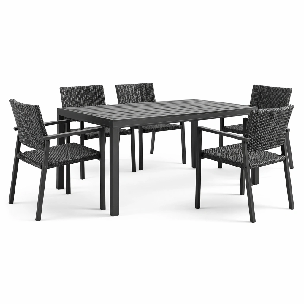Conjunto de mesa y sillas de aluminio y ratán sintético negro